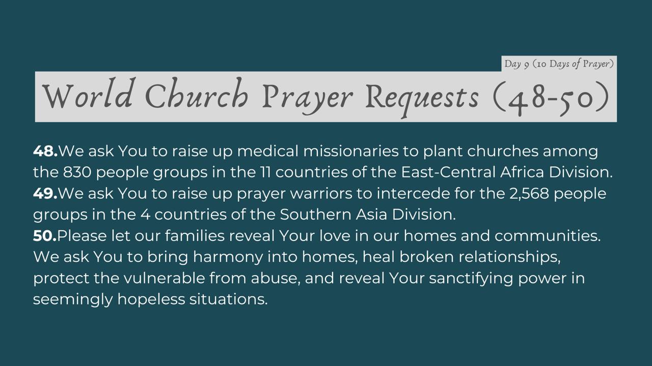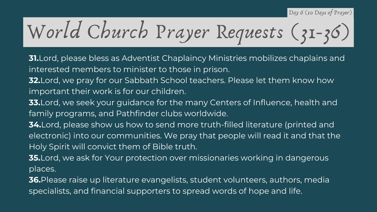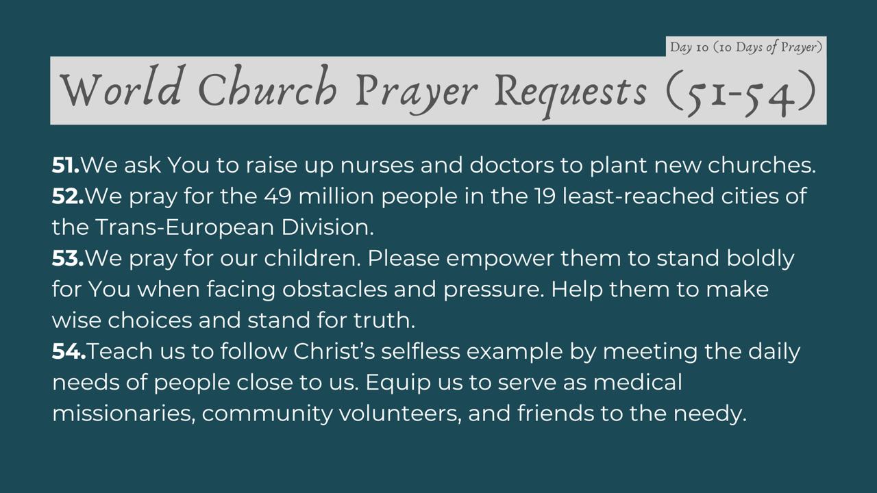 | Date | Topic | 54 Global Prayer Requests |